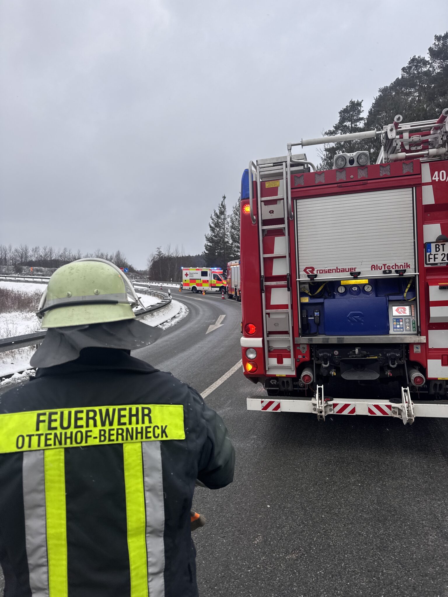 Einsatz Nr. 02/2026 THL 1 VU mit PKW Eingesetzte Kräfte: FF Ottenhof – Bernheck Ottenhof 40/1 Ottenhof 11/1 FF Plech FF Pegnitz Einsatzbericht: Am 04.01.2026 wurden wir an die Anschlussstelle Plech zu einem Verkehrsunfall mit einem PKW alarmiert. Ein PKW kollidierte mit der Leitplanke und kam anschließend im Bereich der