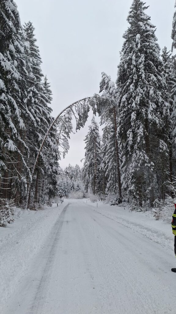 Zum zweiten Einsatz am 27.01.2026 wurden wir erneut auf die Ortsverbindungsstraße zwischen Bernheck und Mosenberg alarmiert. Dort drohte ein Baum auf die Fahrbahn zu stürzen.