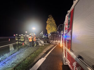 Am 21.10.2025 wurden wir auf die BAB 9, Höhe Parkplatz Sperbes, Fahrtrichtung Berlin, zu einem Verkehrsunfall mit einem LKW alarmiert.