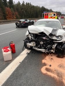 Am 15.11.2024 wurden wir auf die BAB 9 zu einem Verkehrsunfall mit eingeklemmter Person alarmiert. Vor Ort fanden wir 4 verunfallte Fahrzeuge vor in denen glücklicherweise keine Personen eingeklemmt waren, nach kurzer Zeit stellte sich heraus dass sich im Rückstau ein weiter Verkehrsunfall mit eingeklemmter Person ereignete welche die Feuerwehr Pegnitz und Plech sowie die zusätzlich nachalarmierte Feuerwehr Trockau abarbeiteten. An unserer Einsatzstelle betreuten und versorgten wir die Verletzten Personen bis zum Eintreffen des Rettungsdienstes. Aufgrund der auf allen 3 Fahrspuren ausgelaufenen Betriebsstoffe mussten diese mittels Ölbindemittel von uns gereinigt werden. Wir klemmten anschließend die Batterien ab und konnten eine Fahrspur für die zwischen den zwei Unfallstellen befindlichen Fahrzeuge freigeben. Aufgrund der länger anhaltenden Vollsperrung des zweiten Verkehrsunfalls konnten wir die Einsatzstelle nach getaner Arbeit verlassen und mussten diese nicht länger Absichern.