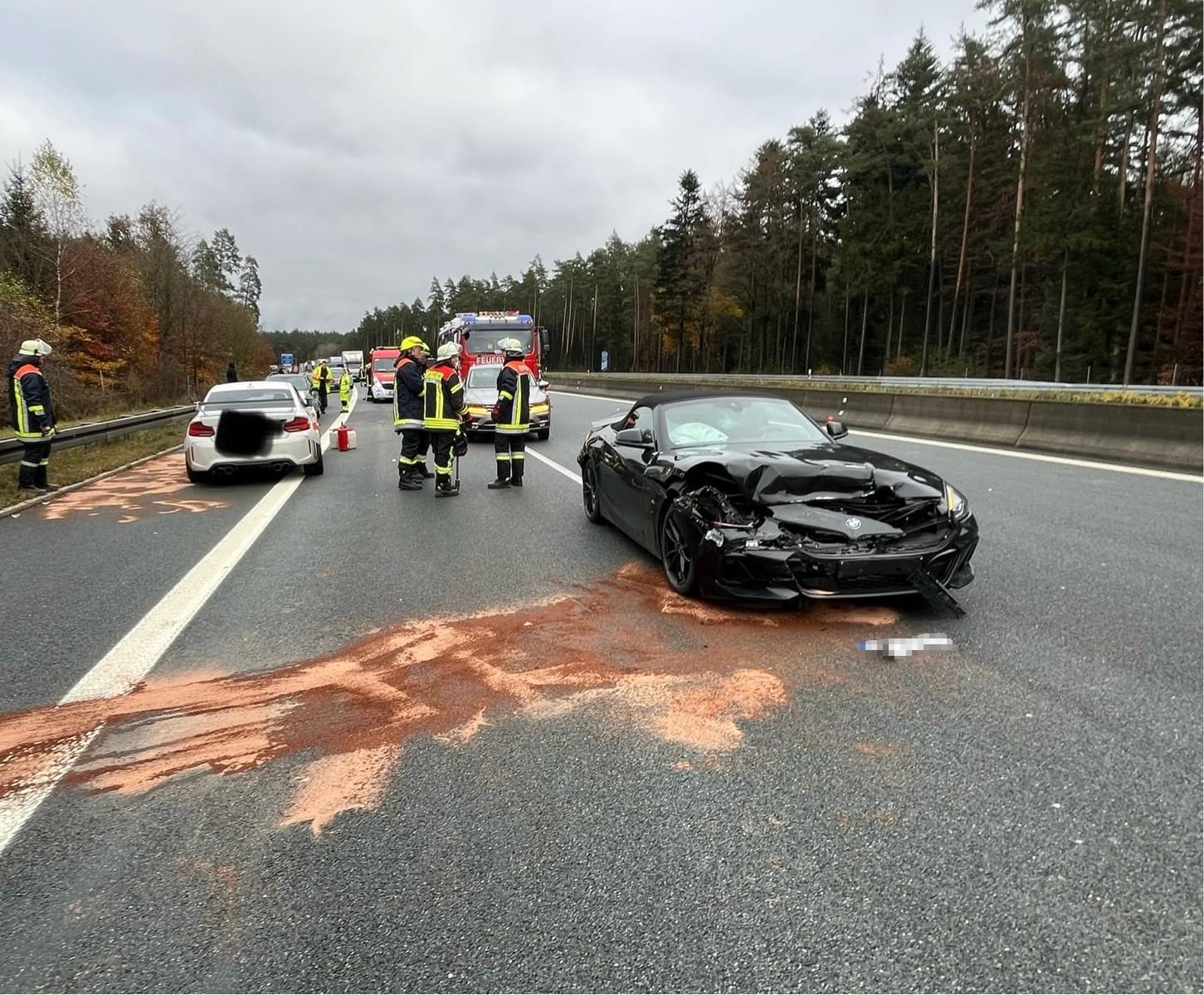 Am 15.11.2024 wurden wir auf die BAB 9 zu einem Verkehrsunfall mit eingeklemmter Person alarmiert. Vor Ort fanden wir 4 verunfallte Fahrzeuge vor in denen glücklicherweise keine Personen eingeklemmt waren, nach kurzer Zeit stellte sich heraus dass sich im Rückstau ein weiter Verkehrsunfall mit eingeklemmter Person ereignete welche die Feuerwehr Pegnitz und Plech sowie die zusätzlich nachalarmierte Feuerwehr Trockau abarbeiteten. An unserer Einsatzstelle betreuten und versorgten wir die Verletzten Personen bis zum Eintreffen des Rettungsdienstes. Aufgrund der auf allen 3 Fahrspuren ausgelaufenen Betriebsstoffe mussten diese mittels Ölbindemittel von uns gereinigt werden. Wir klemmten anschließend die Batterien ab und konnten eine Fahrspur für die zwischen den zwei Unfallstellen befindlichen Fahrzeuge freigeben. Aufgrund der länger anhaltenden Vollsperrung des zweiten Verkehrsunfalls konnten wir die Einsatzstelle nach getaner Arbeit verlassen und mussten diese nicht länger Absichern.