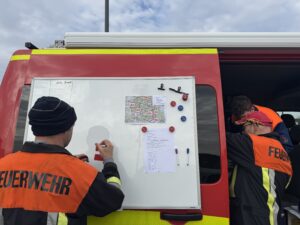 Am Vormittag des 23.03.2025 wurde mit allen Wehren des Unterkreises 10 des Landkreises Bayreuth die Frühjahrsübung durchgeführt. Die Übung bestand darin, die Wege im Veldensteiner Forst zu erkunden, um für zukünftige Einsätze gewappnet zu sein. Hierfür wurde der Veldensteiner Forst in 12 Abschnitte eingeteilt, welche von einzelnen Fahrzeugen erkundet wurden. Jedes Fahrzeug erkundete, welche Wege befahrbar sind und welche Orte sich zum Aufstellen eines Faltbehälters eignen. Dies konnten die Fahrzeugführer in einer Karte eintragen. Unser 11/1 wurde als Einsatzleitfahrzeug eingesetzt und dokumentierte die Übung, führte Standortabfragen (über Koordinaten, W3W sowie GPS-Übermittlung) durch und übernahm einfache Funkaufgaben. Unser 40/1 bekam den Erkundungsabschnitt 6 und erkundete das zugeteilte Waldgebiet. Insgesamt nahmen rund 70 Kräfte mit 13 Fahrzeugen teil.