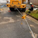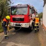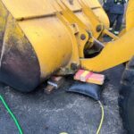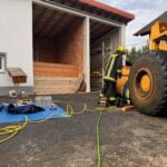 Am 07.08.2024 hielten wir eine Gruppenübung zum Thema Technische Hilfeleistung. Angenommen wurde eine Person welche unter einer Radladerschaufel eingeklemmt wurde und befreit werden musste. Desweiteren musste der Fahrer des Radladers aus ca. 2 Metern gerettet werden da es für ihn nicht mehr möglich war normal über die Leiter des Radladers abzusteigen. Wir bauten eine Geräteablage in der Nähe des Radladers auf mit technischem Gerät wie Hebekissen oder Abstützsystemen. Als erstes wurde das Fahrzeug mit keilen gegen das wegrollen gesichert und eine Sicherungskette am Frontlader angehängt welches bei Druckverlust des Frontladers die Schaufel an ihrer Position halten soll. Anschließend wurden zwei Hebekissen unter die Radladerschaufel gelegt, gleichmäßig aufgeblasen und während dessen mit dem Stab-Pack unterbaut. Nach kurzer Zeit konnte der Dummy gerettet werden. Der Fahrer wurde mittels Spine-board über die Rettungsplattform gerettet. Zuletzt wurde noch die richtige Verwendung des Kettenzuges geprobt.